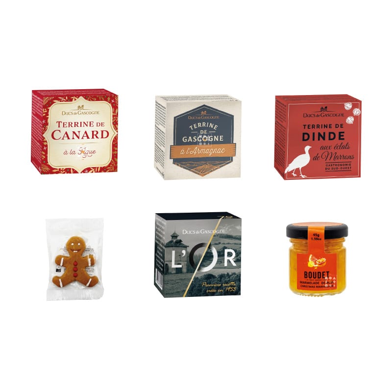 • Produits salés : Foie gras, terrines, confits, conserves, rillettes