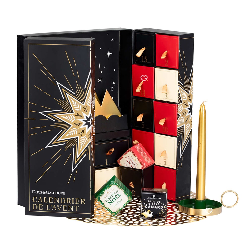 Le Calendrier de l'Avent Ducs de Gascogne 2025 "L'étoile" transforme l'attente de Noël en une véritable odyssée gustative avec ses 24 spécialités artisanales françaises soigneusement sélectionnées. Cette création d'exception allie l'expertise centenaire de la maison fondée en 1953 à un savant équilibre entre délices sucrés et savoureux, offrant chaque jour une nouvelle découverte gastronomique allant du foie gras signature aux confits traditionnels, en passant par des chocolats raffinés et des madeleines authentiques. Présenté dans un élégant écrin aux allures de village enneigé, ce calendrier premium devient le cadeau idéal pour les amateurs de belle gastronomie, promettant 24 moments de plaisir partagé et d'authenticité française qui sublimeront les fêtes de fin d'année avec raffinement et gourmandise.