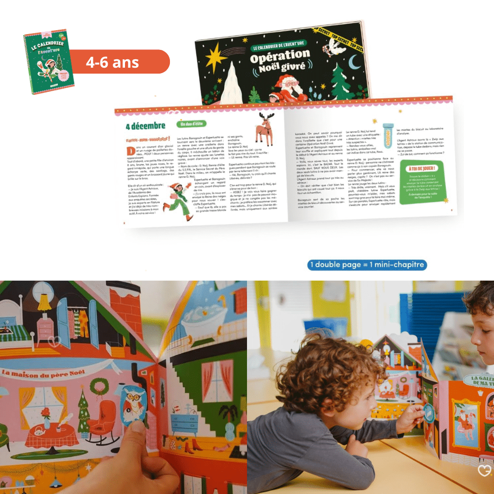 • Contenu : 24 épisodes audio, livre pop-up, matériel d'investigation, cartes énigmes, surprise du 24 décembre