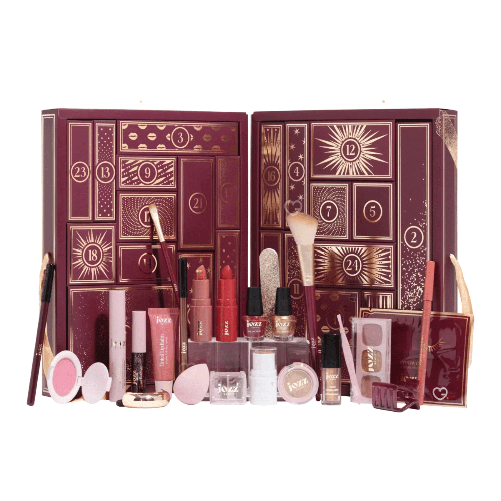 Découvrez le calendrier de l'Avent Jozz Beauty 2025 "The Christmas Party", une collection scintillante de 24 surprises beauté pour transformer votre attente de Noël en véritable fête quotidienne. Cette édition limitée réunit 18 produits de maquillage essentiels (palettes d'ombres à paupières, gloss, rouge à lèvres, mascara, bronzer) et 6 accessoires indispensables (pinceaux, pince à épiler, éponge) dans un sublime écrin mauve orné d'un nœud doré. Parfait pour les débutantes comme pour les passionnées, ce calendrier offre une expérience beauté complète à prix accessible, permettant de créer aussi bien des looks naturels que des maquillages audacieux. Avec Jozz Beauty, marquez cette saison festive d'une touche glamour et découvrez chaque jour de décembre une nouvelle façon d'exprimer votre style unique.