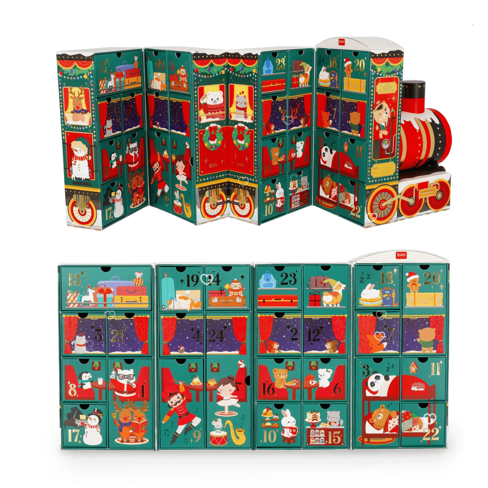 Le Calendrier de l'Avent Legami 2025 "Dream Express" transforme l'attente de Noël en une aventure quotidienne magique avec son design unique en forme de train décoratif qui se déplie pour révéler 24 compartiments remplis d'accessoires de papeterie de qualité supérieure. Cette création italienne exceptionnelle combine parfaitement l'émerveillement festif et l'utilité pratique en offrant aux enfants des articles soigneusement sélectionnés comme des stylos effaçables en édition limitée, des surligneurs colorés, des taille-crayons originaux et des broches festives, créant ainsi une tradition familiale enrichissante qui stimule la créativité tout en décorant magnifiquement leur chambre pendant toute la période des fêtes.