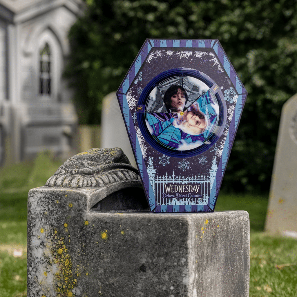 Plongez dans l'univers mystérieux de Wednesday Addams avec ce calendrier de l'avent deluxe 2025 signé Cinereplicas, présenté dans un écrin en forme de cercueil à effet lenticulaire qui capture parfaitement l'esthétique gothique de l'héroïne Netflix. Cette édition collector exclusive sous licence officielle MGM révèle 24 surprises soigneusement sélectionnées incluant bijoux, accessoires et articles de papeterie aux couleurs sombres et élégantes de Wednesday. Chaque jour dévoile un cadeau unique transformant votre compte à rebours de Noël en une expérience macabre et raffinée, parfaite pour les fans de la série qui souhaitent prolonger la magie gothique de Nevermore Academy jusque dans leur quotidien avec des objets de collection authentiques et de qualité premium.