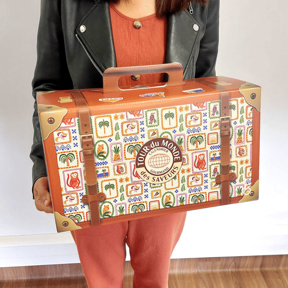 Embarquez pour un voyage gastronomique extraordinaire avec notre Calendrier de l'Avent Tour du Monde des Saveurs 2025, une expérience culinaire unique qui transforme l'attente de Noël en aventure internationale. Cette création exclusive vous fait découvrir 24 spécialités authentiques provenant de 19 pays à travers 5 continents, soigneusement sélectionnées chez des artisans locaux pour leur qualité exceptionnelle. Présenté dans un élégant coffret en forme de valise de voyage, ce calendrier premium offre un parfait équilibre entre douceurs exquises et délices salés, des yokan japonais au miel de montagne chilien, en passant par les biscuits au gouda hollandais. Chaque jour révèle une nouvelle surprise gustative accompagnée de son histoire culturelle, créant 24 moments d'évasion et de découverte pour les gourmets curieux et les amoureux de voyages qui souhaitent explorer les saveurs du monde depuis chez eux.